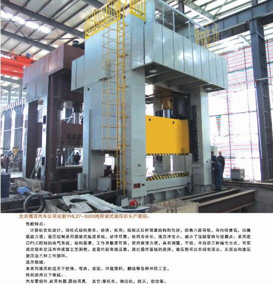 公司能夠?yàn)槭袌?chǎng)提供42大類(lèi)500余個(gè)品種的標(biāo)準(zhǔn)液壓機(jī)和非標(biāo)專(zhuān)用、精密伺服液壓機(jī)。產(chǎn)品廣泛應(yīng)用于汽車(chē)、航天、粉末冶金、船舶、輕工、建筑、電子、家用電器等行業(yè),并代表著我國(guó)通用液壓機(jī)的發(fā)展水平。公司生產(chǎn)、設(shè)計(jì)、開(kāi)發(fā)的液壓機(jī)產(chǎn)品完全能夠滿(mǎn)足國(guó)內(nèi)不同用戶(hù)多層次的需要。